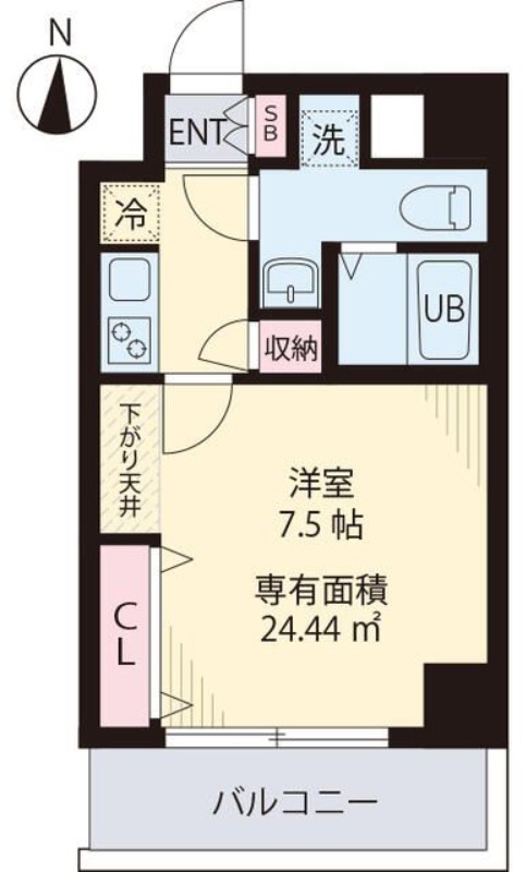 | 間取り | 1K | 面積 | 24.44㎡ |