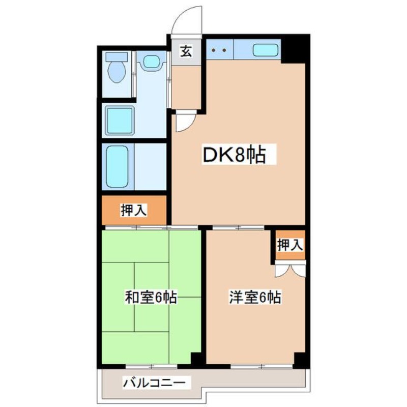 | 間取り詳細 | 和室 6畳 、 洋室 6畳 、 DK 8畳 |