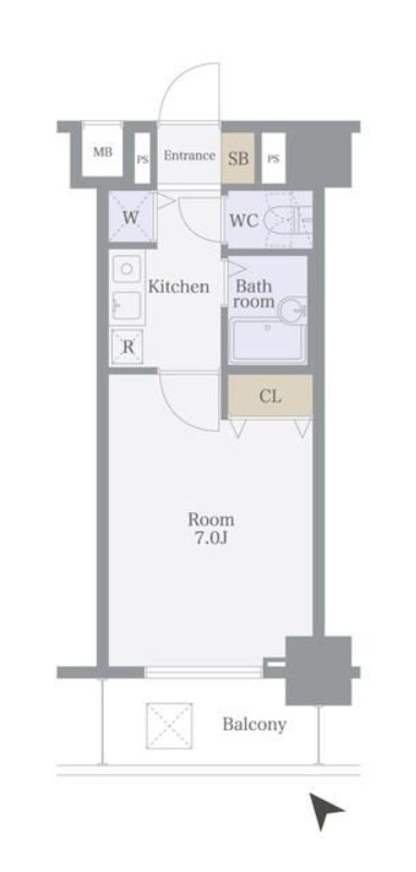 | 1K | 洋室 7畳 | 22.12㎡ |