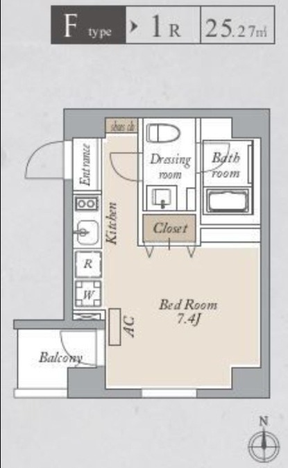 | 間取り | ワンルーム | 面積 | 25.27㎡ |