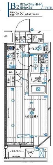| 間取り | 1K | 面積 | 25.81㎡ |