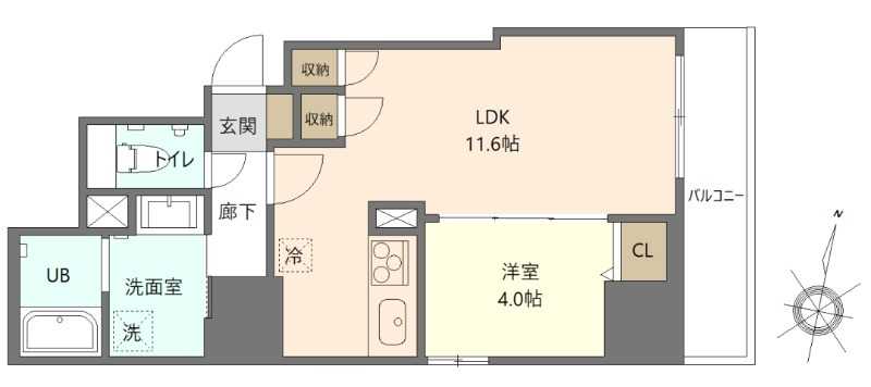 | 間取り詳細 | LDK 11.6畳 、 洋室 4畳 |