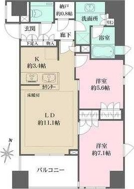| 間取り詳細 | LD 11.1畳 、 K 3.4畳 、 洋室 7.1畳 、 洋室 5.6畳 |