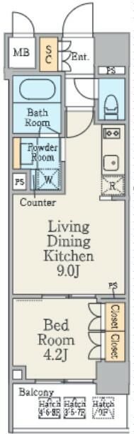 | 間取り詳細 | 洋室 4.2畳 、 LDK 9畳 |