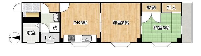 | 間取り詳細 | 和室 6畳 、 洋室 8畳 、 DK 8畳 |