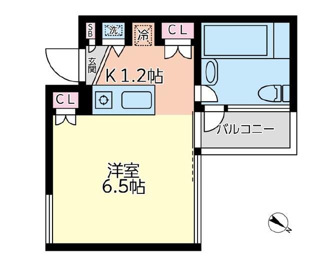 | 間取り詳細 | 洋室 6.5畳 、 K 1.2畳 |