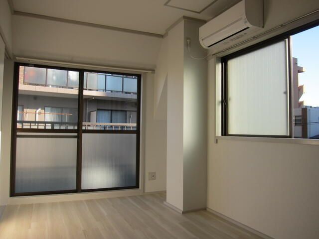| 設備 | ガス(都市ガス)、2面採光、角部屋、フローリング、全居室フローリング、ベランダ・バルコニー、クローゼット、クローゼット数(1)、下駄箱、バス・トイレ別(同室)、シャワー、給湯、洗濯機置き場(室内)、コンロ設置可、コンロ種類(都市ガス)、冷房のみ、エアコン、エアコン台数(1) | ||