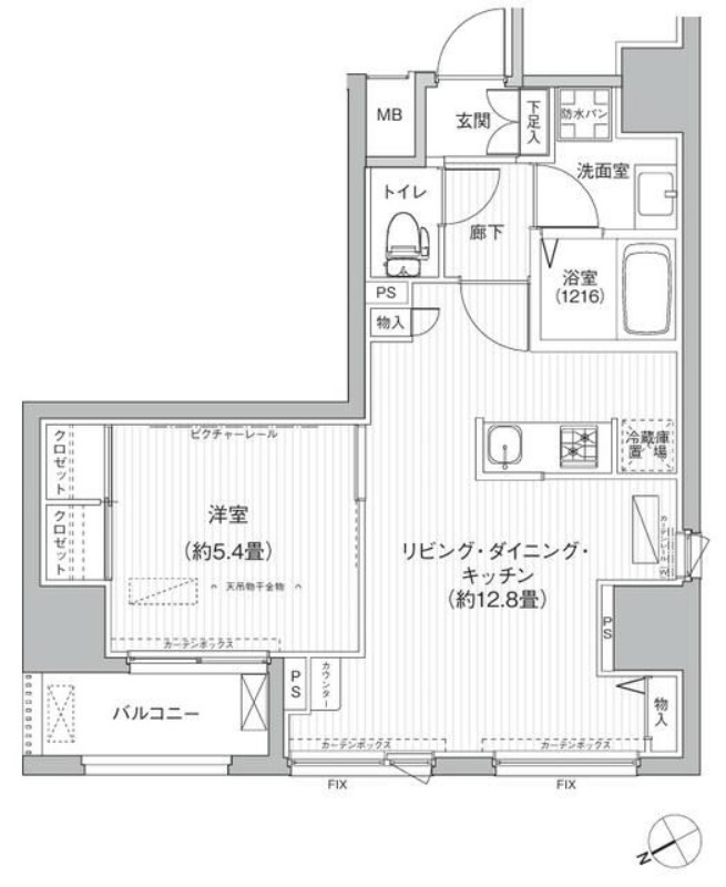 | 間取り詳細 | 洋室 5.4畳 、 LDK 12.8畳 |