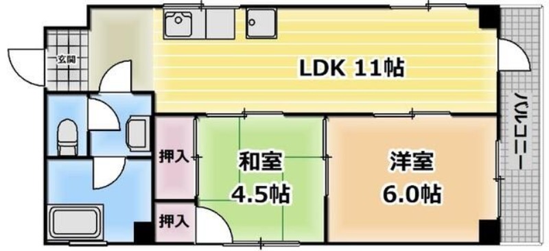 | 間取り詳細 | 和室 4.5畳 、 洋室 6畳 、 LDK 11畳 |