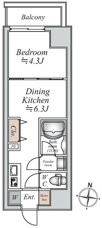 | 間取り | 1DK | 面積 | 25.98㎡ |