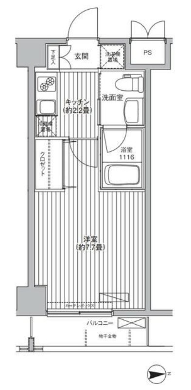 | 間取り詳細 | 洋室 7.7畳 、 K 2.2畳 |