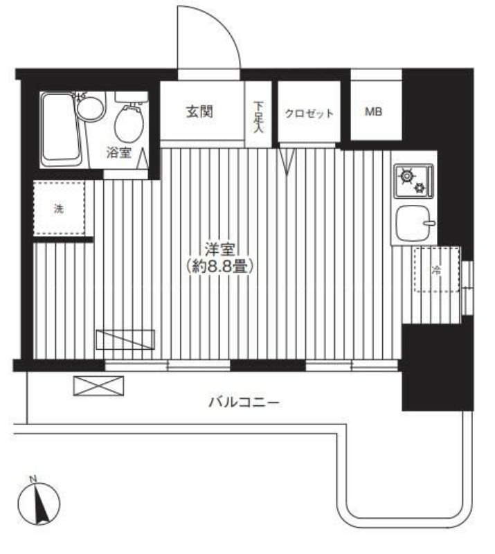 | ワンルーム | 洋室 8.8畳 | 20.72㎡ |