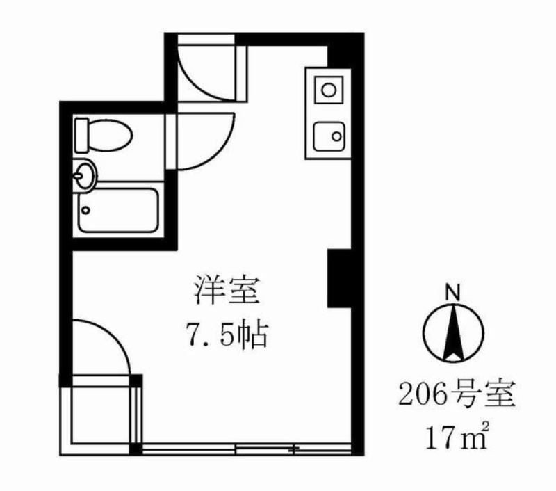 | ワンルーム | 洋室 7.5畳 | 17㎡ |